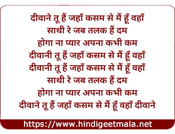 Lyrics of Diwane Tu Hai Jaha - दीवाने तू हैं जहाँ