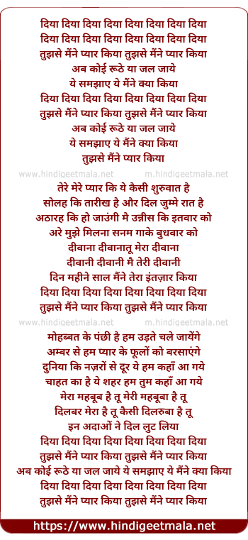 Lyrics of Diya Diya Dil Diya, Tujhse Maine Pyar Kiya - दिया दिया दिल दिया, तुझसे मैंने प्यार किया