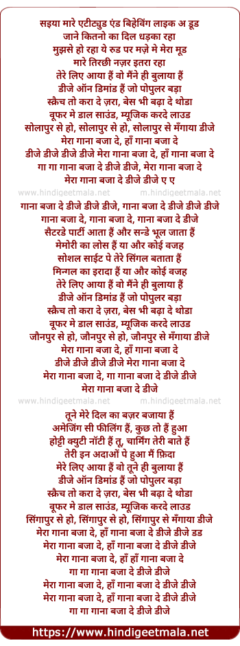 Lyrics of Dj, Mera Gaana Baja De - डीजे, मेरा गाना बजा दे