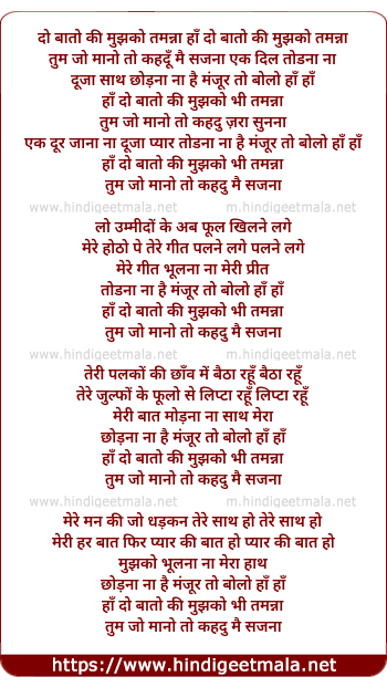 Lyrics of Do Baton Ki Mujh Ko Tamanna - दो बातो की मुझको तमन्ना