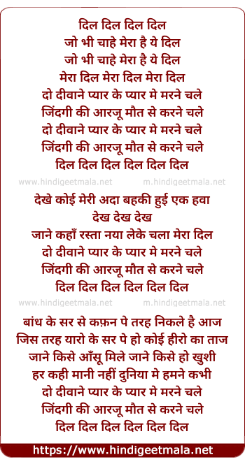 Lyrics of Do Deewane Pyar Ke Pyar Me Marne Chale - दो दीवाने प्यार के प्यार में मरने चले