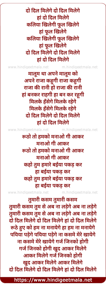 Lyrics of Do Dil Milenge - दो दिल मिलेगे