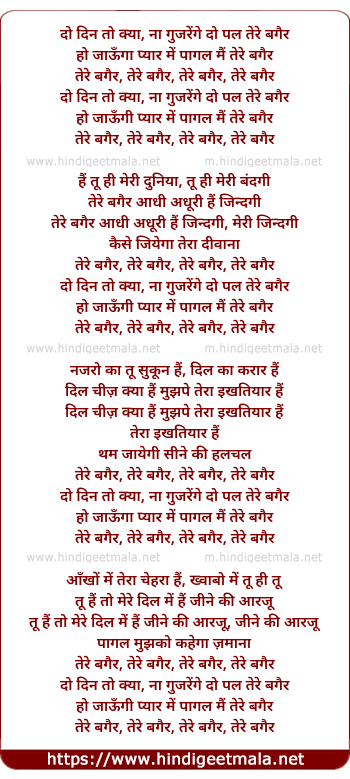 Lyrics of Do Din To Kya, Na Gujarenge Do Pal Tere Bagair - दो दिन तो क्या, ना गुजरेंगे दो पल तेरे बगैर