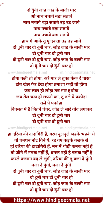 Lyrics of Do Duni Chaar (Remix) - दो दुनी जोड़ जाड़ के बाजी मार