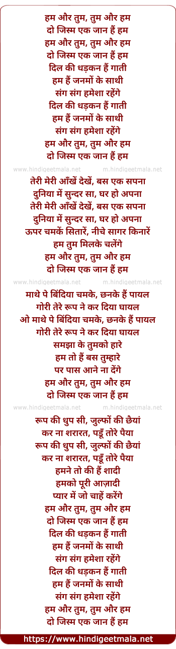 Lyrics of Do Jism Ek Jaan - दो जिस्म एक जान