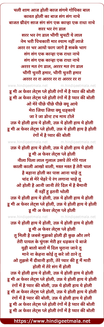Lyrics of Do Me A Favour Lets Play Holi, Rango Me Hai Pyar Ki Boli - डू मी ए फेवर लेट्स प्ले होली, रंगों में है प्यार की बोली