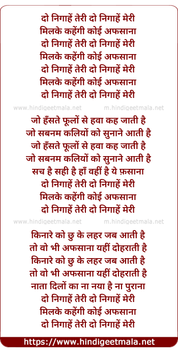 Lyrics of Do Nigahe Teri Do Nigahe Meri - दो निगाहें तेरी दो निगाहें मेरी