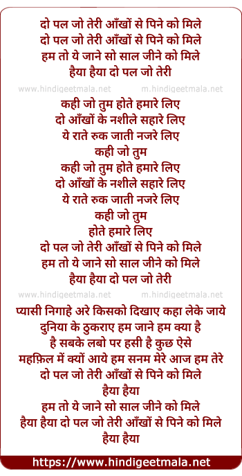 Lyrics of Do Pal Jo Teri Ankho Se - दो पल जो तेरी आँखों से