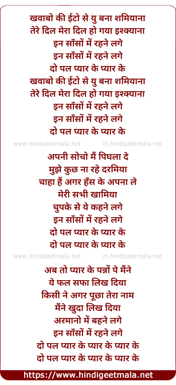 Lyrics of Do Pal Pyar Ke - दो पल प्यार के