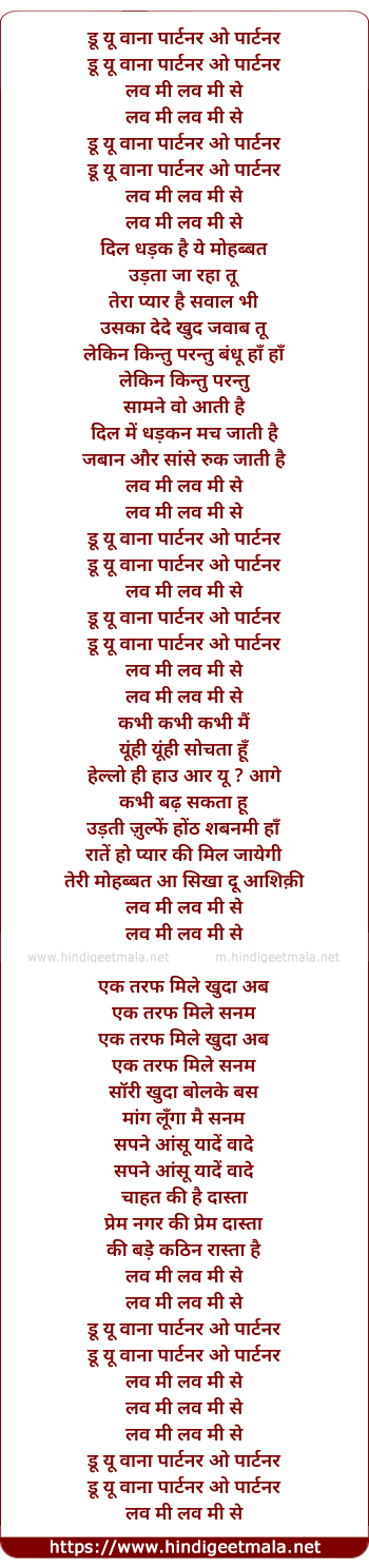 Lyrics of Do U Wanna Partner O Partner - डू यू वाना पार्टनर ओ पार्टनर