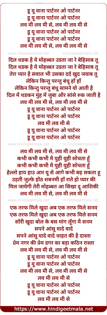 Poetic Translation - Lyrics of Do U Wanna Partner (Remix) - डू यू वाना पार्टनर ओ पार्टनर