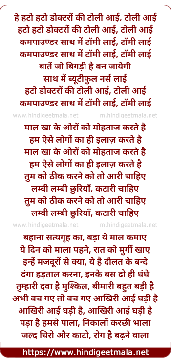 Lyrics of Doctron Ki Toli Aayi - हे हटो हटो डोक्टरों की टोली आई, टोली आई