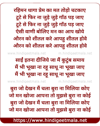 Lyrics of Dohe.........Rahiman Dhaga Prem Ka - दोहे .........रहीमन धागा प्रेम का