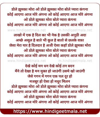 Lyrics of Dole Jhumka Mera Bole Pyara Kagna - डोले झुमका मोरा बोले प्यारा कंगना