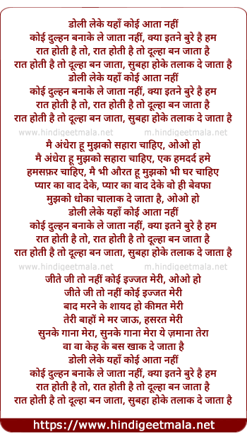 Doli Leke Yahan Koi Aata Nahi - डोली लेके यहाँ कोई आता नहीं