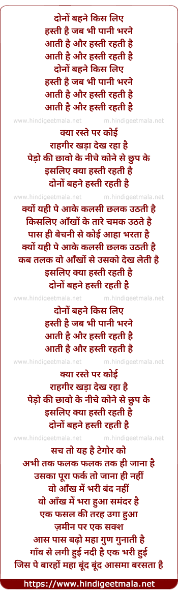 Lyrics of Dono Behne Kis Liye Hansti Hai - दोनों बहने किस लिए हंसती है