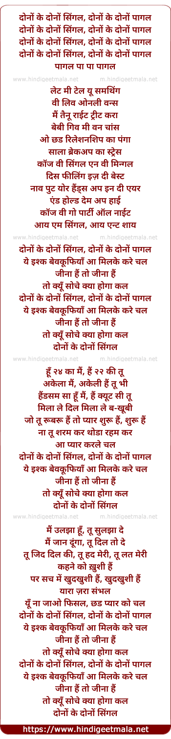 Lyrics of Dono Ke Dono - दोनों के दोनों सिंगल, दोनों के दोनों पागल