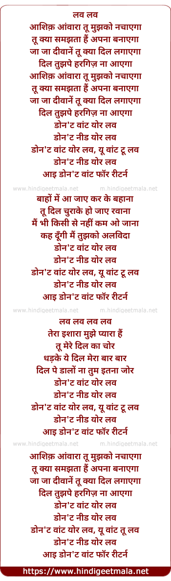Poetic Translation - Lyrics of Don't Want Your Love - लव लव