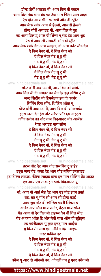 Poetic Translation - Lyrics of Don't Worry About Me, I'll Be Fine - डोन्'ट वोर्री अबाउट मी, आई विल बी फाइन