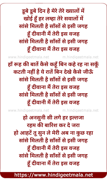 Lyrics of Doobe Doobe Din Mere - डूबे डूबे दिन है मेरे तेरे ख्यालों में