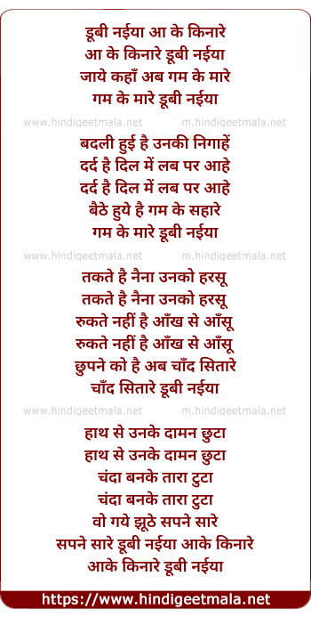 Lyrics of Doobi Naiya Aa Ke Kinare - डूबी नईया आ के किनारे