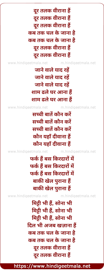 Lyrics of Door Talak Veerana - दूर तलक वीराना हैं
