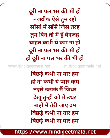 Lyrics of Doori Na Pal - दूरी ना पल