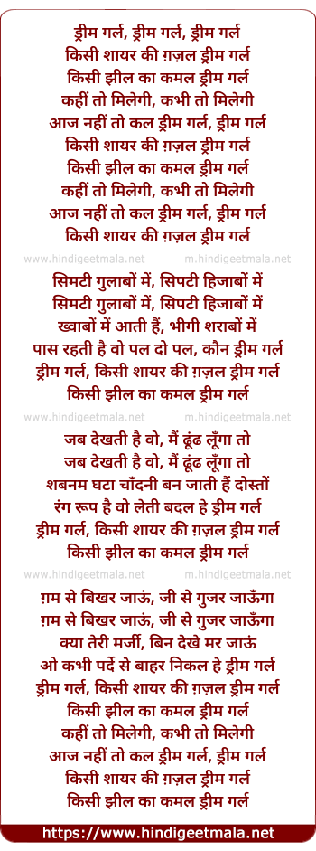 Lyrics of Kisi Shayar Ki Ghazal, Dream Girl - किसी शायर की ग़ज़ल, ड्रीम गर्ल