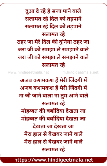 Lyrics of Dua De Rahe Hai Saza Pane Wale - दुआ दे रहे है सजा पाने वाले