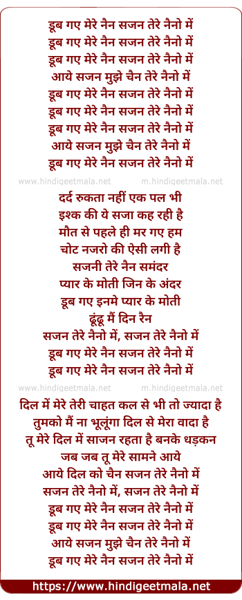 Lyrics of Dub Gaye Mere Nain Sajan Tere - डूब गए मेरे नैन सजन तेरे
