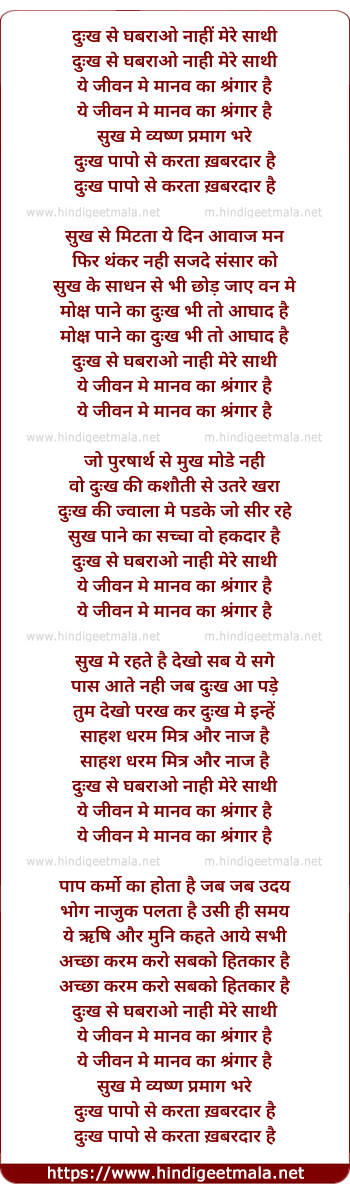 Lyrics of Dukh Se Ghabrao Nahi - दुःख से घबराओ नहीं
