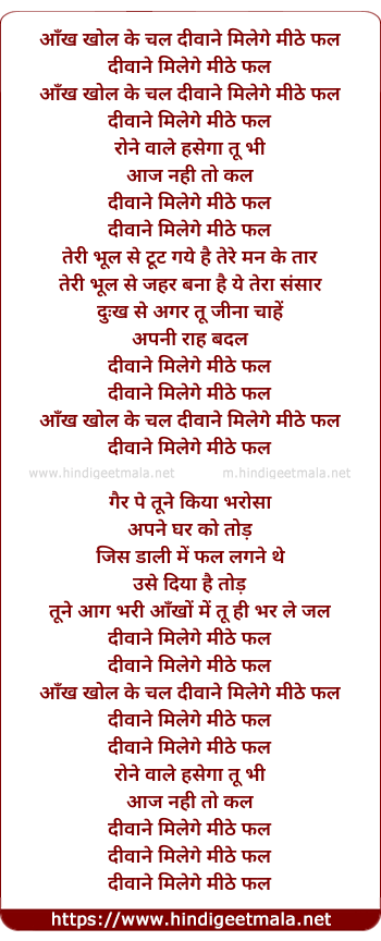 aankh khol ke chal diwane milege meete fal