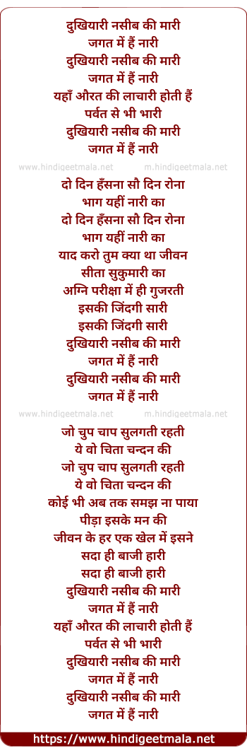 Lyrics of Dukhiyari Naseeb Ki Maari - दुखियारी नसीब की मारी