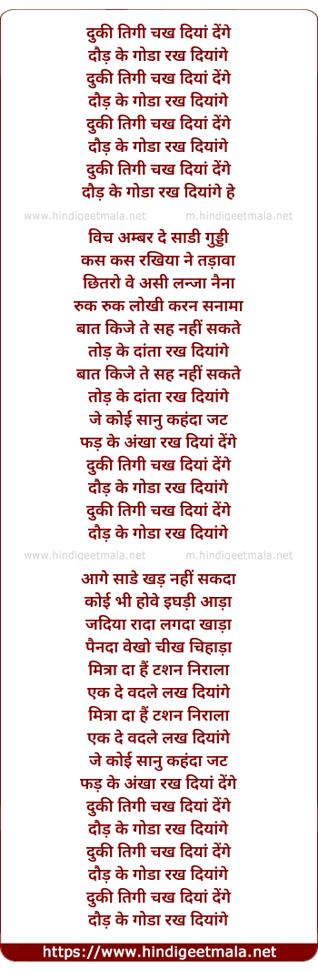 Lyrics of Dukki Tikkee - दुकी तिगी चख दियां देंगे