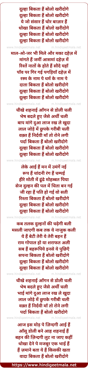 Lyrics of Dulha Bikta Hai - दूल्हा बिकता हैं