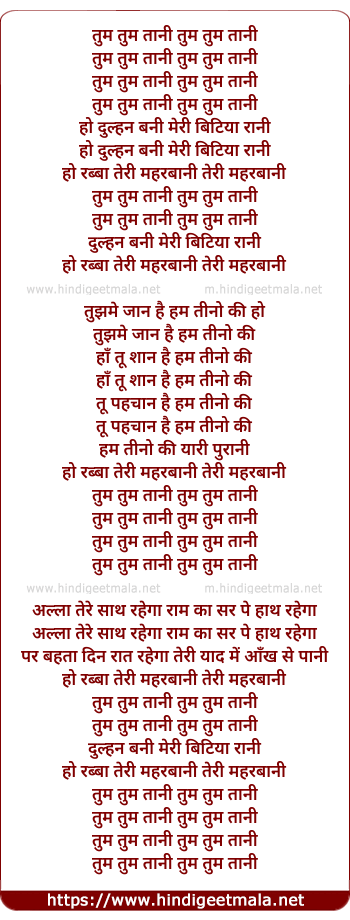 Lyrics of Dulhan Bani Meri Bitiya Rani - दुल्हन बनी मेरी बिटिया रानी
