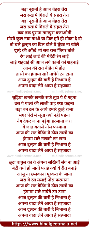 aaj dulhan ki bari hai nibhana hai apna wada lane aaye hai sahjada