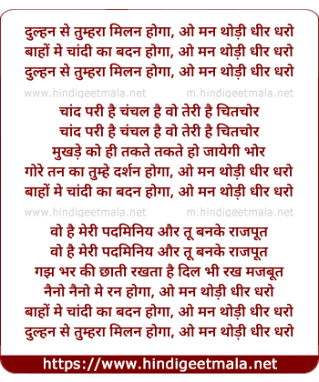 dulhan se tumhara milan hoga, o man thodi dhir dharo