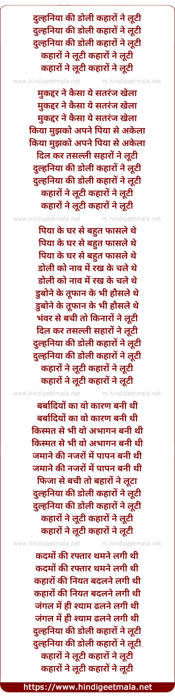 Poetic Translation - Lyrics of Dulhaniya Ki Doli - दुल्हनिया की डोली