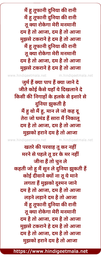 Lyrics of Dum Hai To Aaja - दम है तो आजा