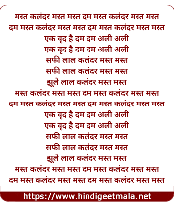 Lyrics of Dum Mast Kalndar - मस्त कलंदर मस्त मस्त दम मस्त कलंदर मस्त मस्त