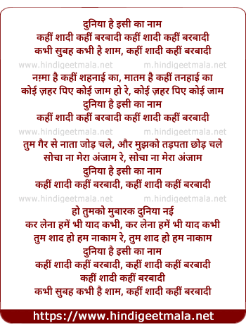 Lyrics of Duneeya Hai Isi Ka Nam - दुनिया है इसी का नाम