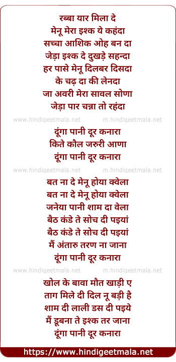 Lyrics of Dunga Paani - रब्बा यार मिला दे
