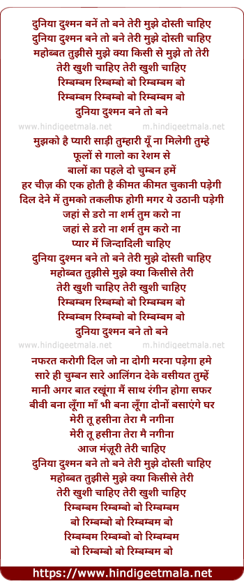 Lyrics of Duniya Dushman Bane To Bane - दुनिया दुश्मन बनें तो बने