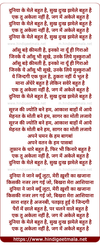 Lyrics of Duniya Ke Mele Bahut Hai - दुनिया के मेले बहुत है