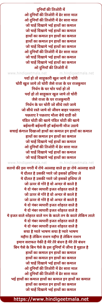Poetic Translation - Lyrics of Duniya Ki Tijori Me Dher Sara Mal - दुनियाँ की तिजोरी में ढेर सारा माल
