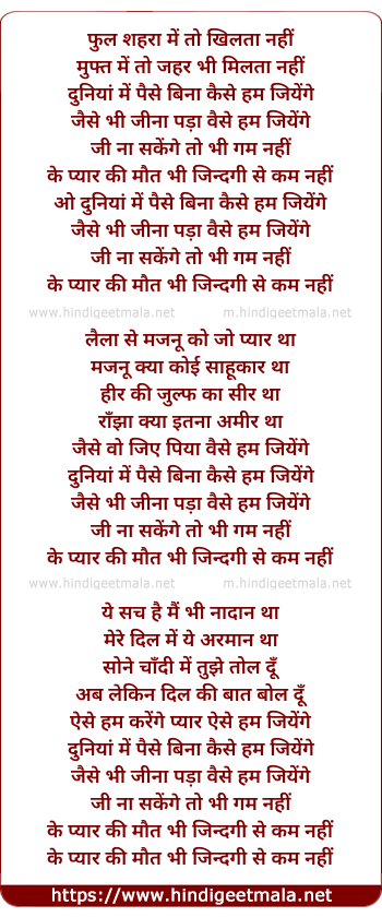 Lyrics of Duniya Me Paise Bina Kaise Ham Jiyenge - दुनियां में पैसे बिना कैसे हम जियेंगे