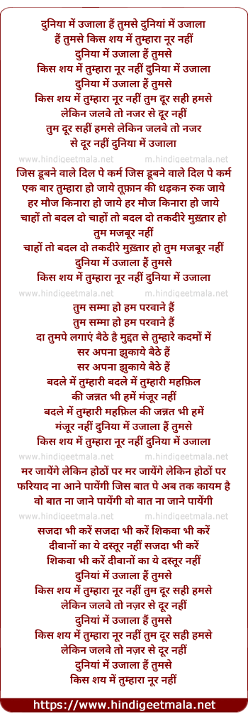 Lyrics of Duniya Me Ujala Hai Tumse - दुनिया में उजाला हैं तुमसे