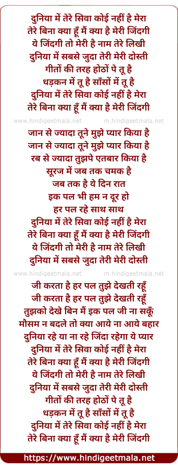 Lyrics of Duniya Mein Tere Siva - दुनिया में तेरे सिवा