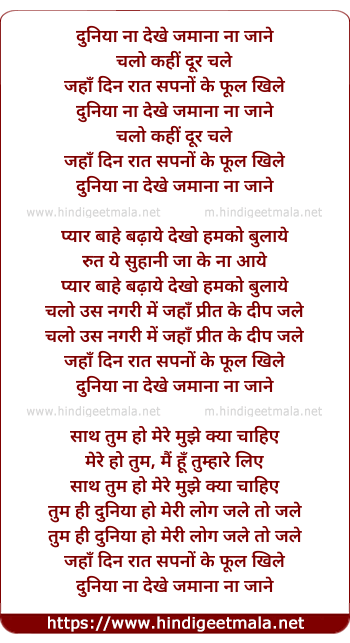 Lyrics of Duniya Na Dekhe Zamana Na Jane - दुनिया ना देखे जमाना ना जाने